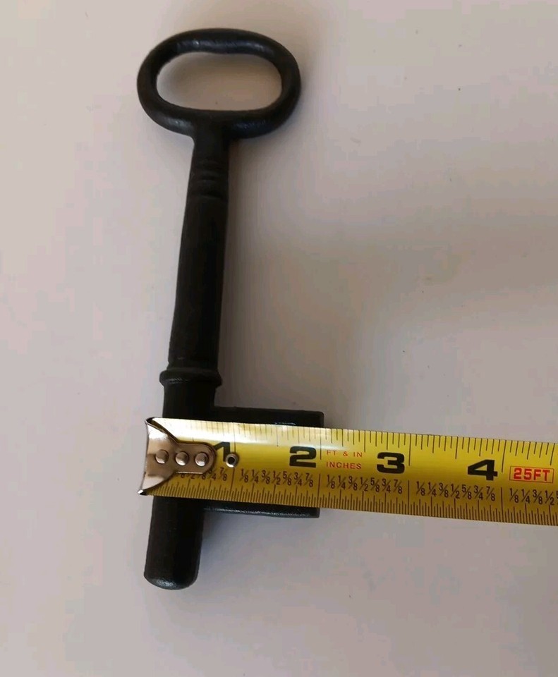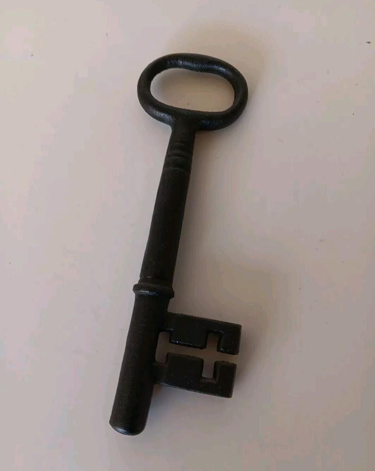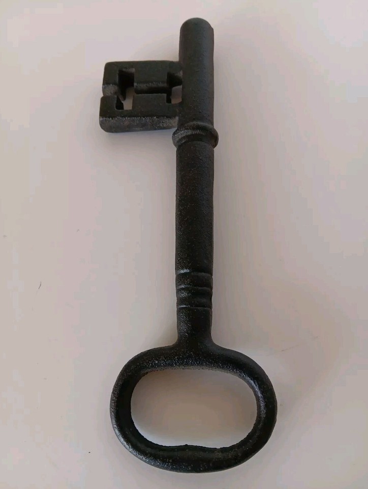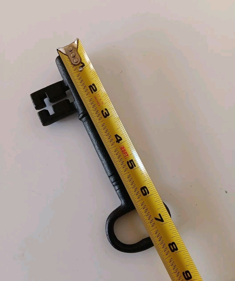 This large black cast iron skeleton key is a unique decorative piece that will add a touch of mystery to any collection. Measuring at approximately 7.5 inches in length, this key is perfect for those who love to explore the unknown. Its intricate design and durable construction make it a great addition to any tool, hardware, or lock enthusiast's collection. The key's country/region of manufacture is unknown, adding to its mystique and allure. This item is sold in a unit quantity of one and is sure to make a statement in any room. This is a pre-owned item with normal wear. See pictures.