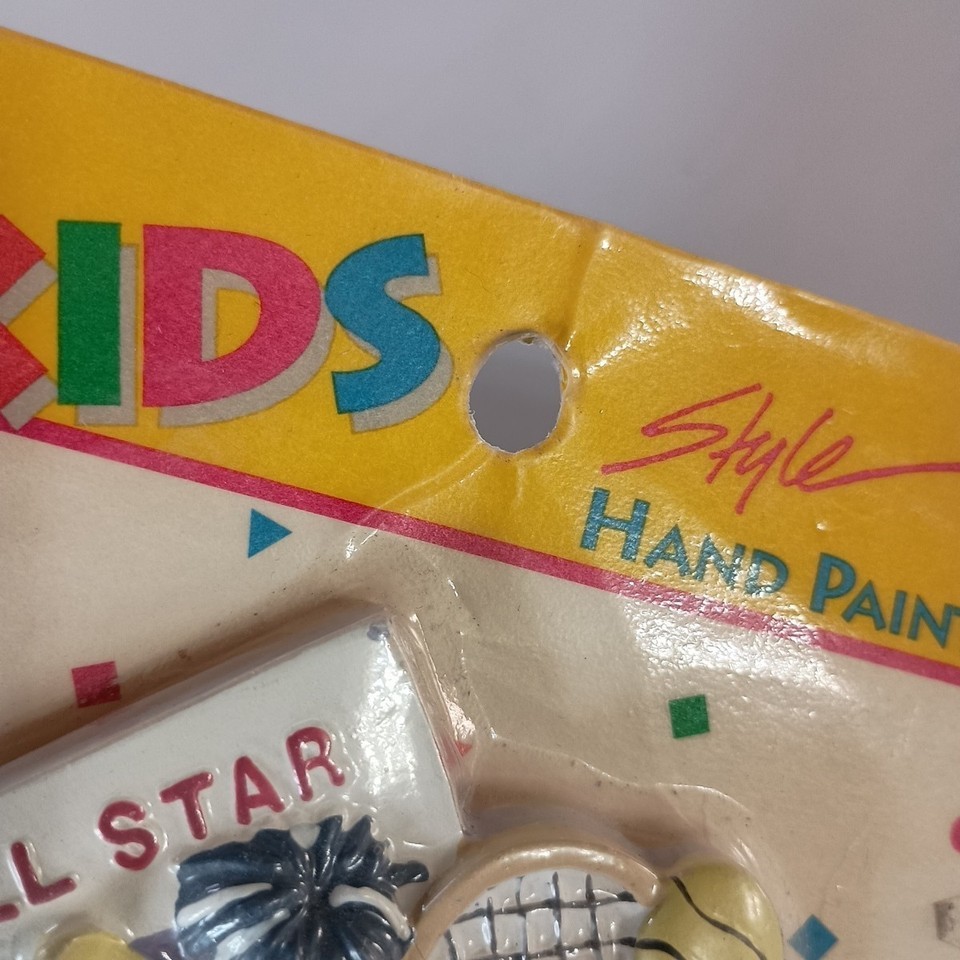 The Kids Style Hand Painted All Star Sports 3D Light Switch Cover by American Tack Hardware is a colorful and decorative addition to any child's room or play area. Made of ABS/plastic, this vertical light switch cover features a sports-themed design, perfect for young athletes or sports enthusiasts. The hand-painted details give it a unique and vintage look, adding a fun and playful touch to the decor. Ideal for home or garden use, this light switch cover is both functional and stylish, making it a great choice for any nursery or kids' bedroom. New in the package with some wear to the package. See pictures.