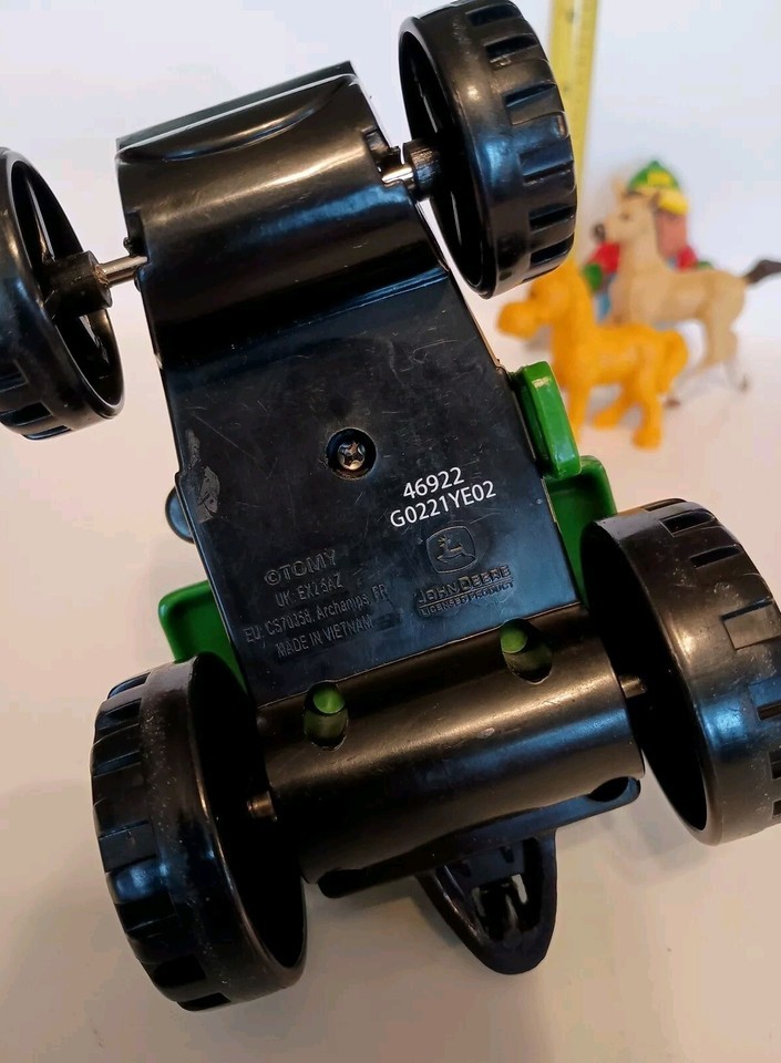 This Tomy John Deere Farm Tractor and Farmer set is a perfect addition to any preschooler's toy collection. The set comes with a farm tractor mixed lot, complete with a John Deere character family theme. This toy is recommended for children aged 4 and above, and is perfect for kids aged 4-7. The toy is made in Vietnam and is a great gift for any young child. The set includes a farm tractor, a farmer, and two ponies, providing endless hours of imaginative play. This toy is categorized under Toys Hobbies, Preschool Toys Pretend Play, and Other Preschool Pretend Play. Normal wear. See Pictures. Mixed Lot.