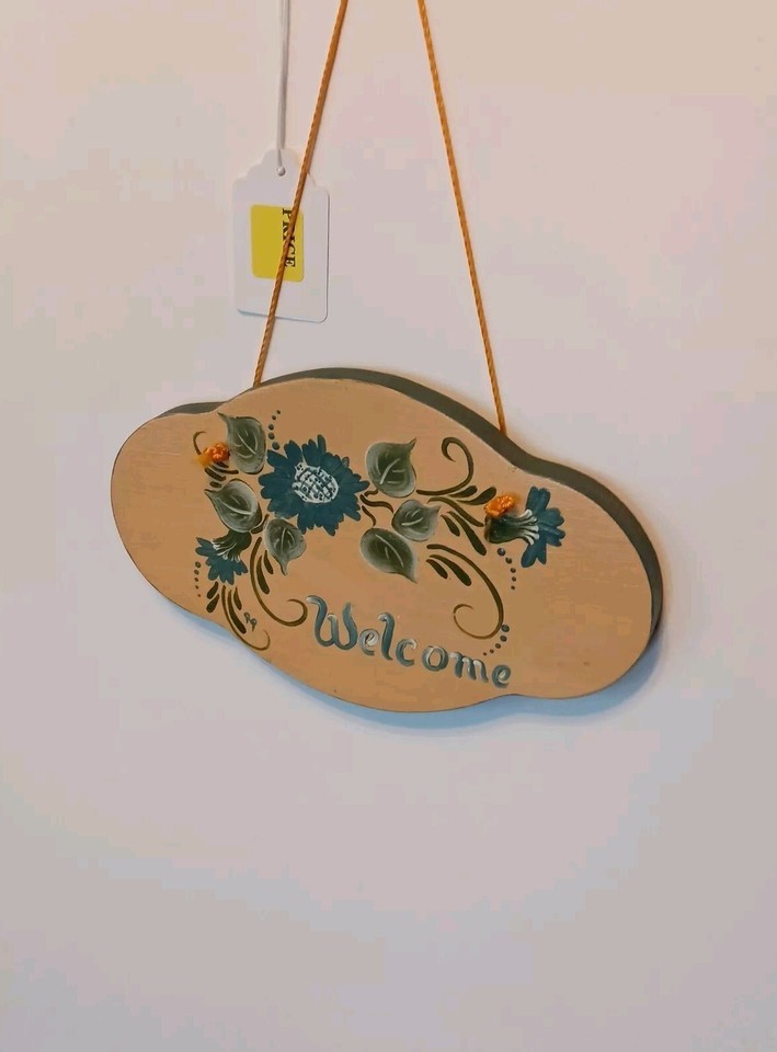 Small Wooden Welcome Sign/Plaque Beautifully Hand Painted Floral Design