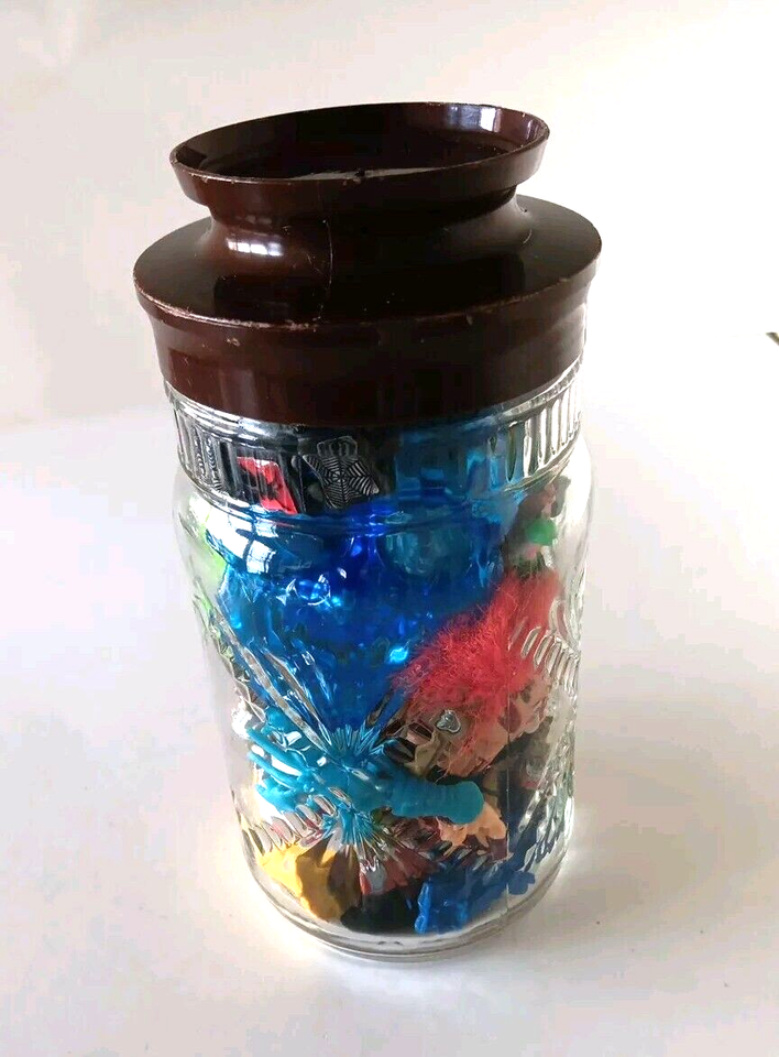Vintage Anchor Hocking jar Filled With Kid's Junk Drawer Tiny Treasures (Boys)