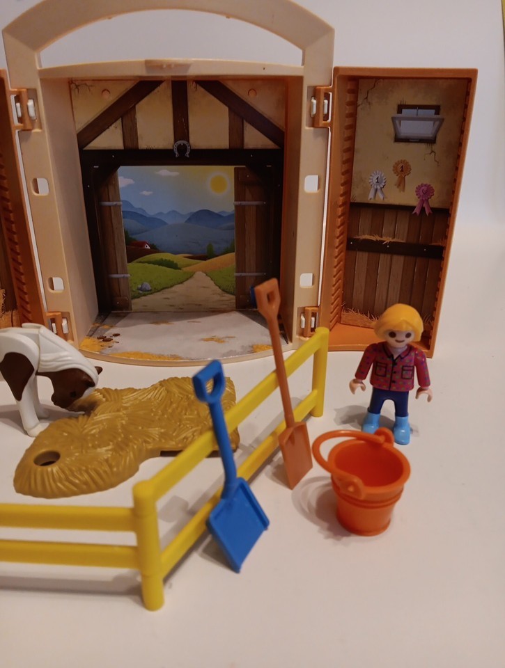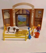 This PLAYMOBIL 2015 Pony Stable Carry Along Travel Set is perfect for young children who love farm-themed toys. It includes a stable with a carry-along design, making it easy for kids to take their favorite animals on the go. The set features a pony, both of which are beautifully crafted with attention to detail. In addition, the set comes with a variety of accessories, This toy is made in Germany, ensuring high-quality materials and construction. With this PLAYMOBIL set, young children can enjoy hours of imaginative play and create their own adventure. Normal wear. See pictures.