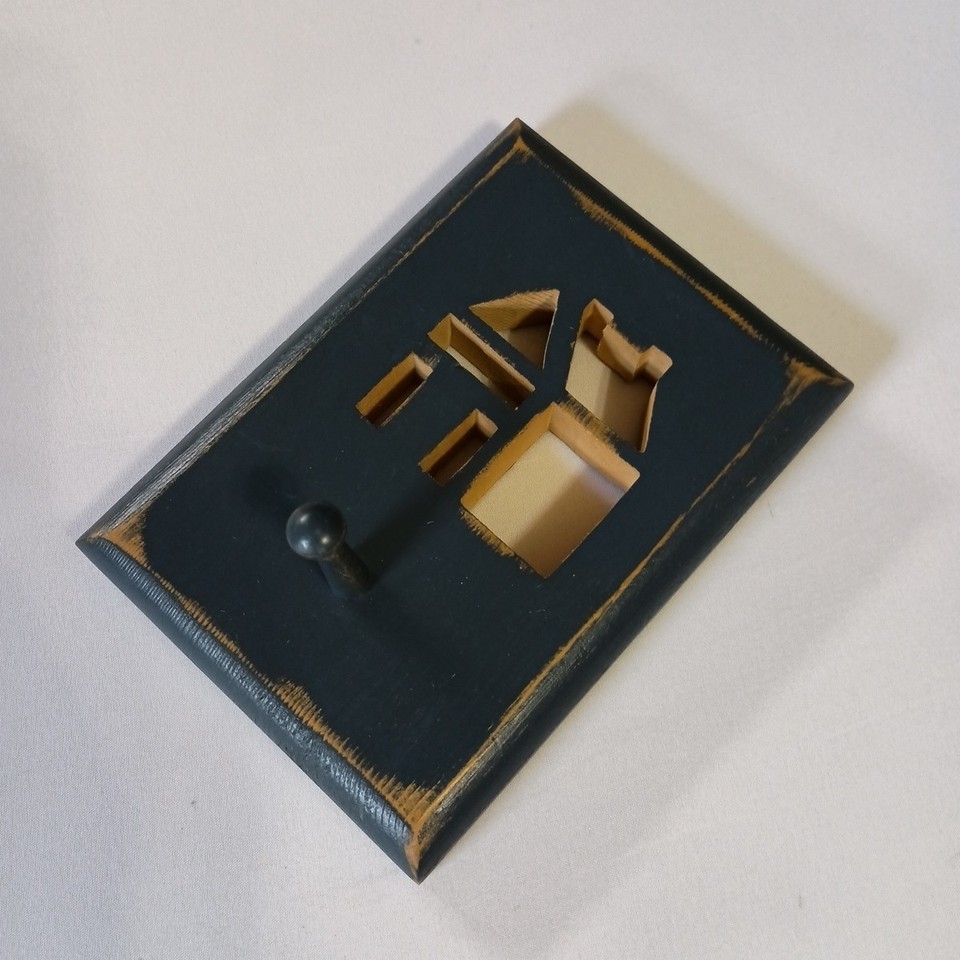 This wall hanging is a unique handmade piece crafted from wood with a farmhouse style design. The blue color adds a whimsical touch to any room, while the peg feature adds functionality as a Dog/Cat leash holder or Key holder. Perfect for adding character to your home decor, this small but impactful piece is sure to make a statement in any space. Normal wear. Sizes are approximate.