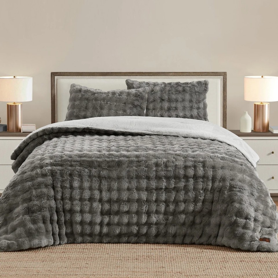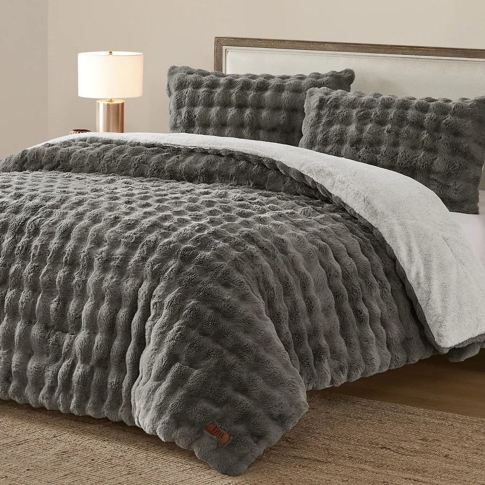 Frye Luxury Bubble Faux Fur Comforter 3 Piece King Set Reversible