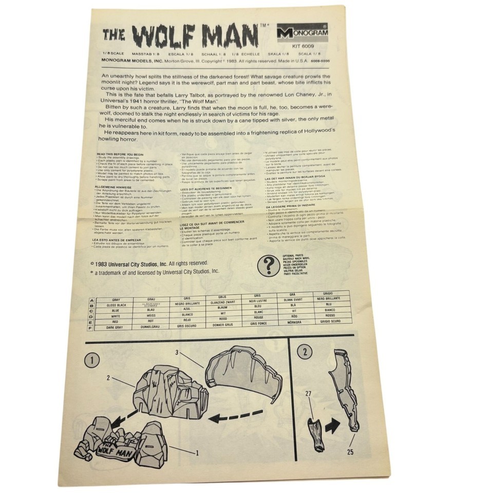 The Wolf Man 1/8 Scale Unassembled Model Kit Monogram Glow-In-The-Dark VIntage