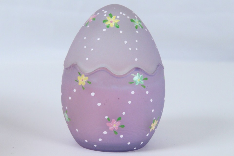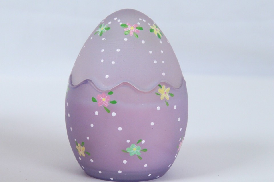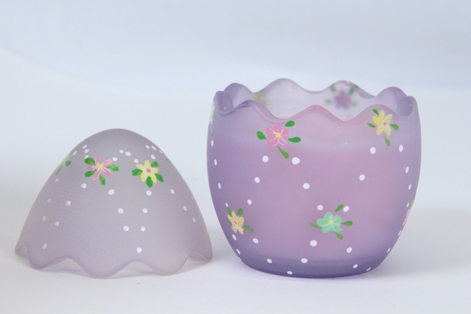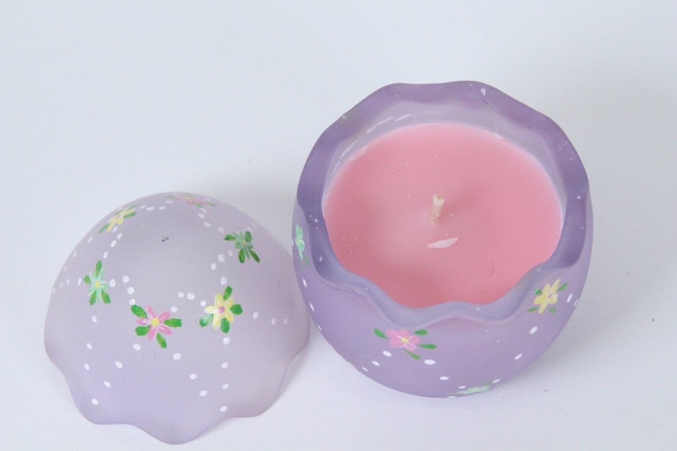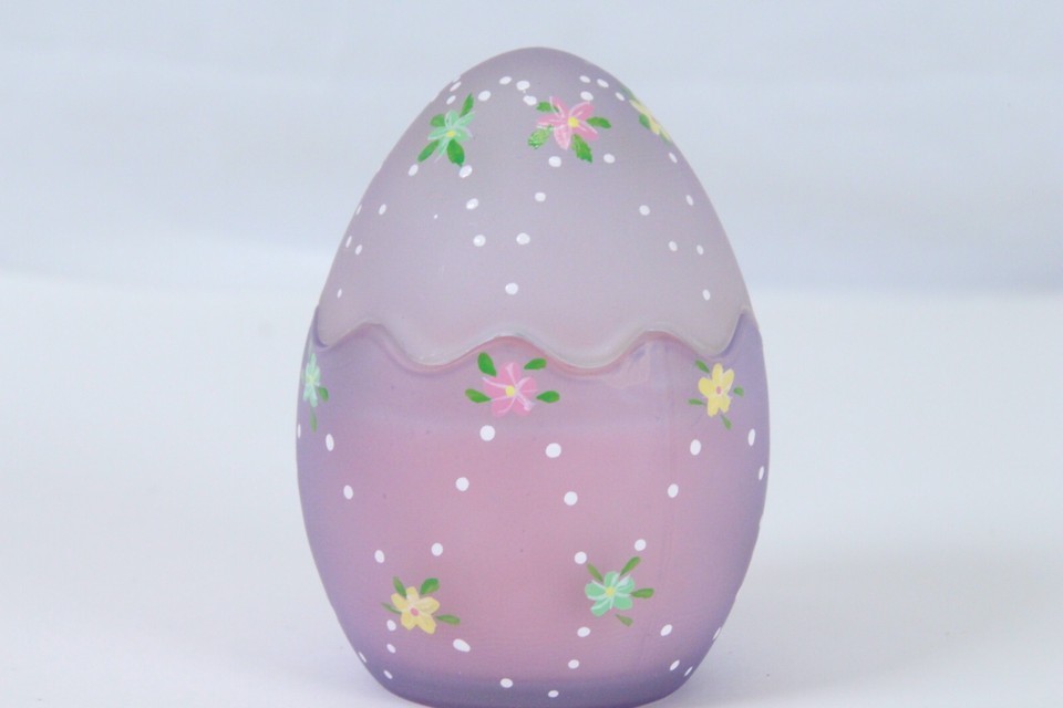Easter Egg Candle Holder Votive Hand Painted Satin Frost Lavender 3.5"H x 2.6"