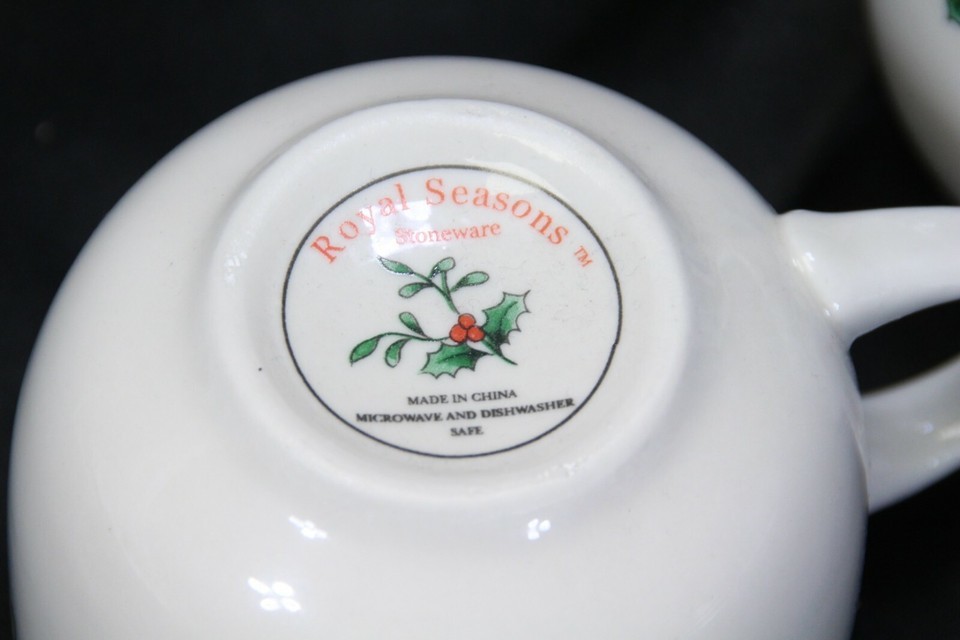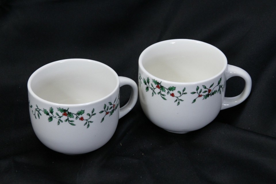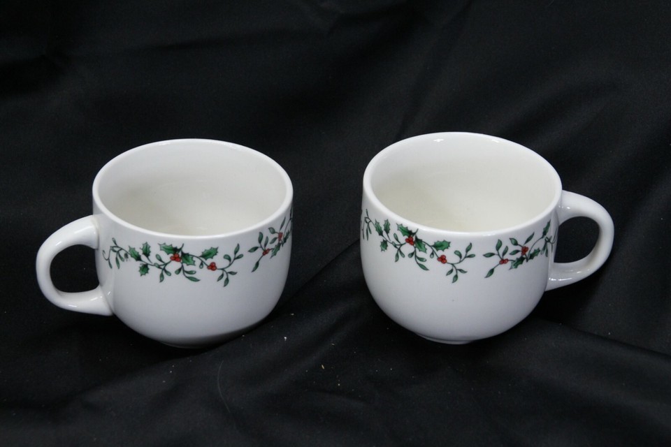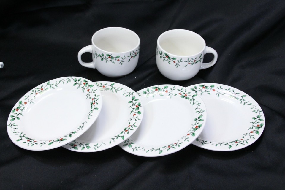 Royal Seasons Holly Christmas 4 Bread Plates and 2 Cups Lot of 6 Xmas