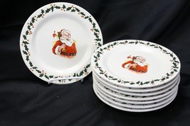 Christmas Tree Holly Santa Stoneware Salad Plates 8-1/8" Lot of 8 Xmas