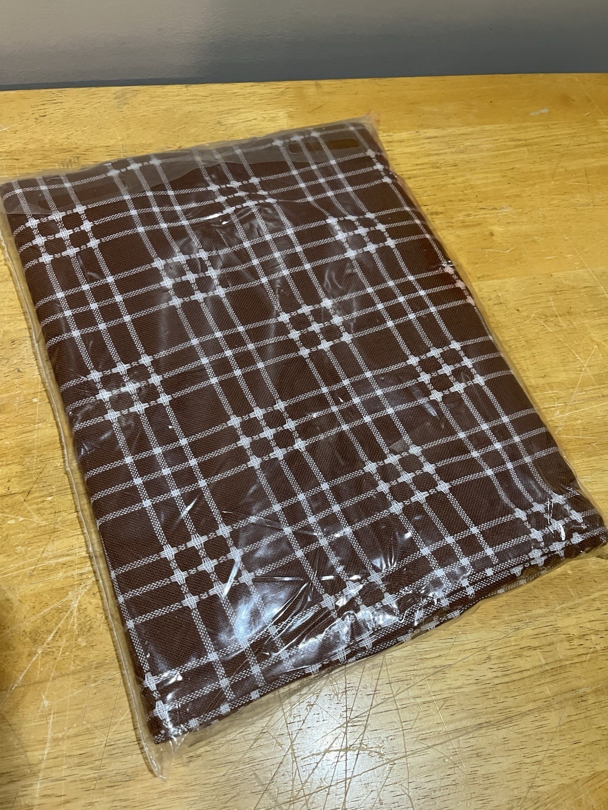 The Vtg Kemp Beatley Table Cloth in Brick Brown Plaid is a charming addition to any country-style kitchen or dining room. With its rectangular shape and large size of 60x86 inches, this tablecloth is versatile enough for all occasions. Made of cloth material, this Retro tablecloth from Kemp and Beatley features a timeless plaid pattern in shades of brown, adding a touch of cottagecore aesthetic to your decor. Perfect for collectors or those looking to add a vintage touch to their dining experience.