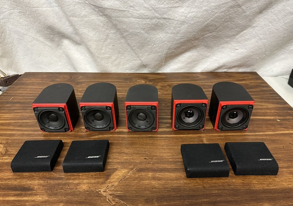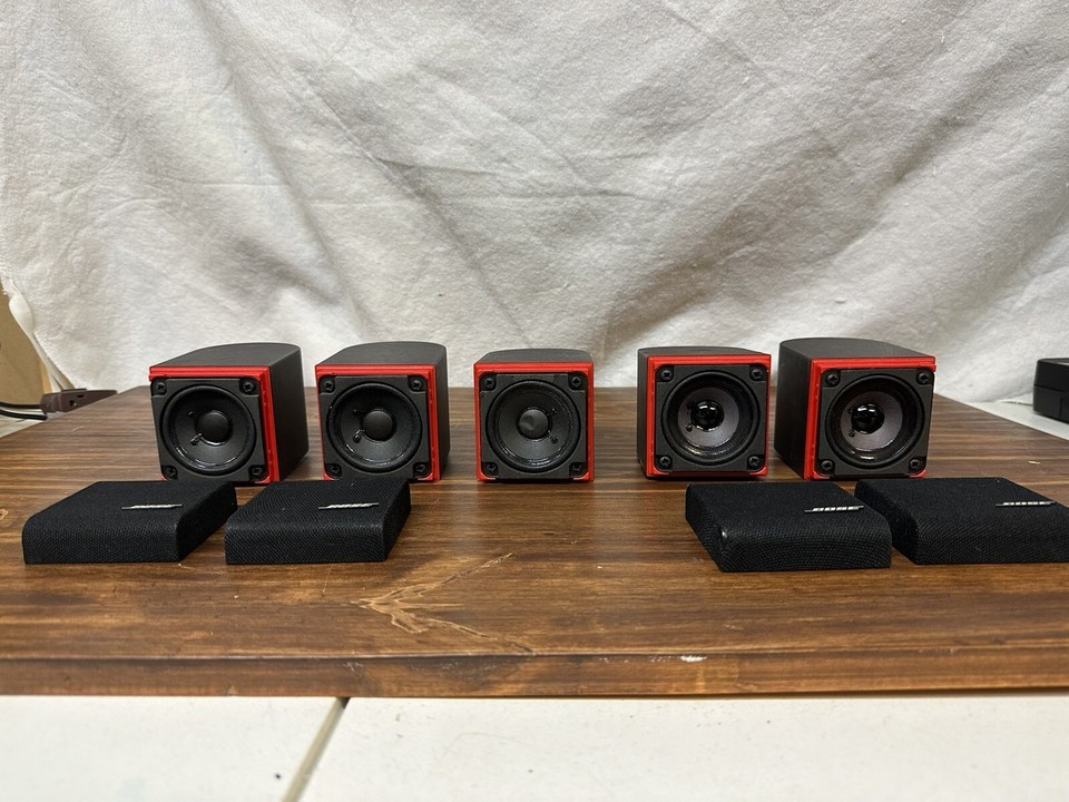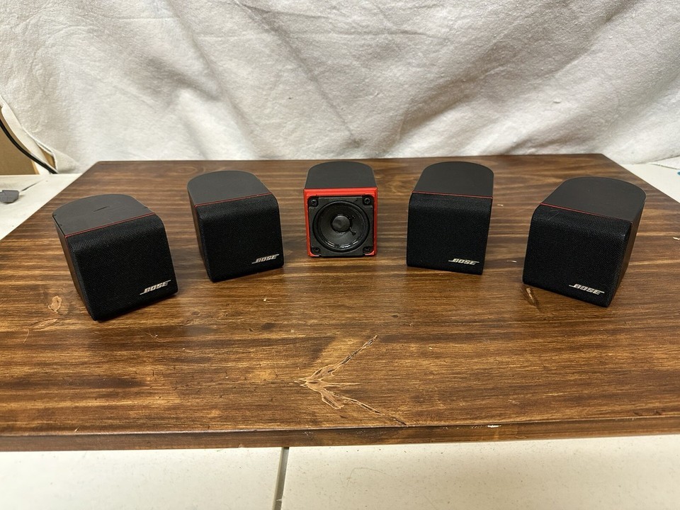 Up for sale are 5 Bose Single Cube Red Line Speakers + Speaker Cables + Owners Manual