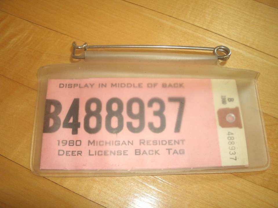 1980 Michigan Resident Deer License Back Tag & Deer Tag in case for back