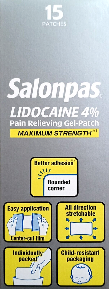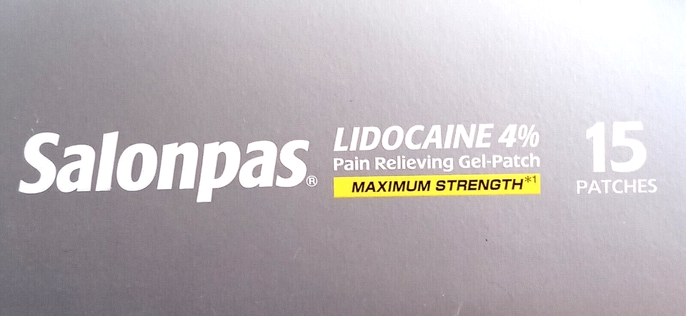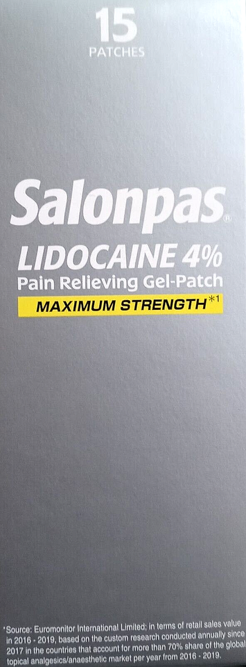 Salonpas LIDOCAINE 4% Pain Relieving Gel-Patch Maximum Strength 15 ct ED:3/2027