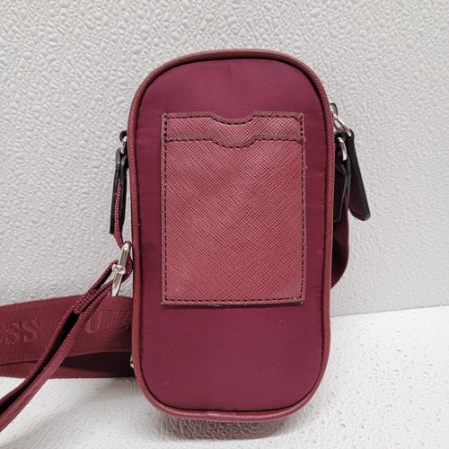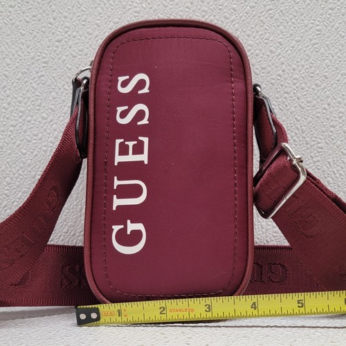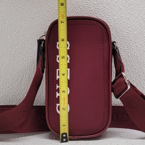 Guess Wallet Mini Burgundy Women Crossbody Purse Phone Holder Approx. 4" x 7". Images show actual item that will ship.