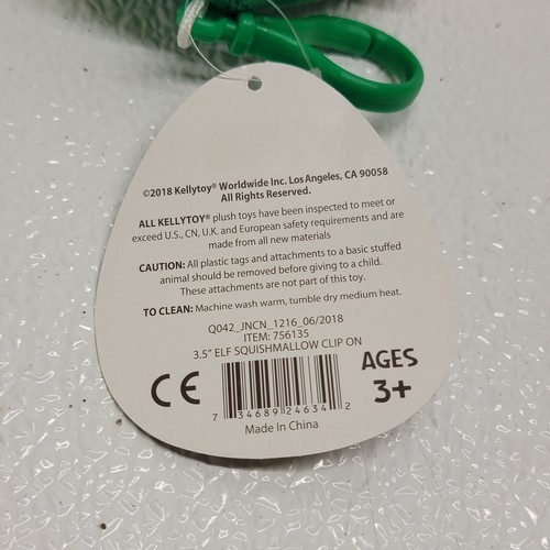 Squishmallow Elf Clip On Christmas Keychain Plush New With Tag! Images show actual item that will ship.