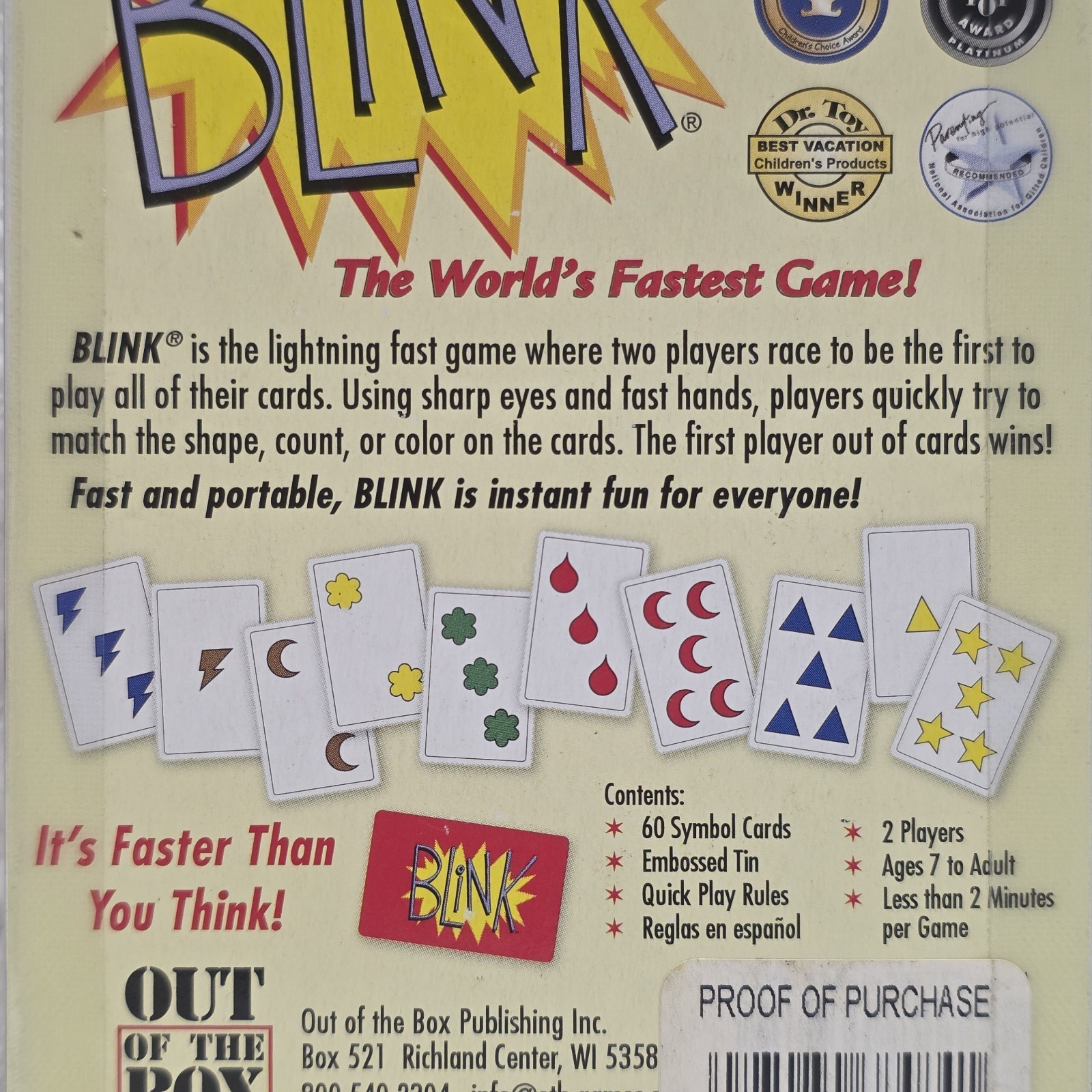 Blink Card Game Travel Tin by Out of the Box 2007 New Sealed. Images show actual item that will ship.