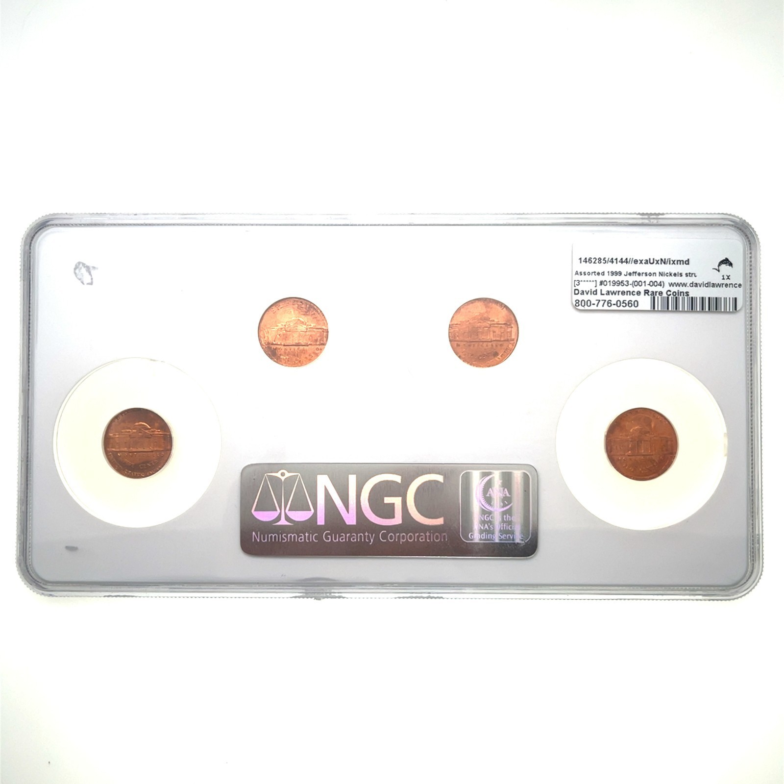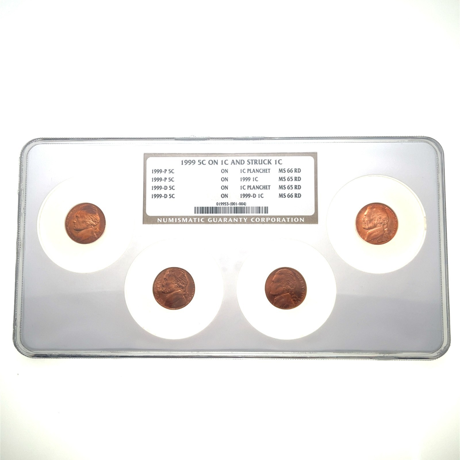 1999 Monedas Múltiples 5C en 1C Error de Níquel en Penique NGC MS65RD a MS66RD