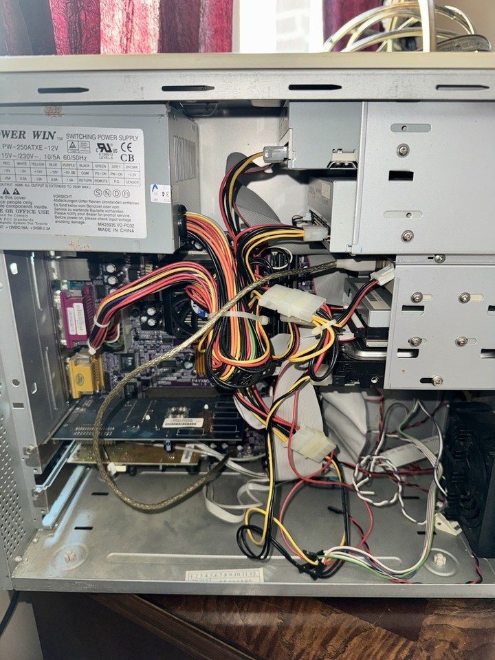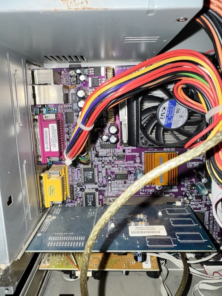 Tested working. Likely needs a new ribbon cable as I had issues getting both the cd drive and the HD to show up when both connected. USB keyboard appears to stop working after second post screen. Works fine in the BIOS. Power button does not work so computer has to be ?jumped? from the motherboard. No other known issues.