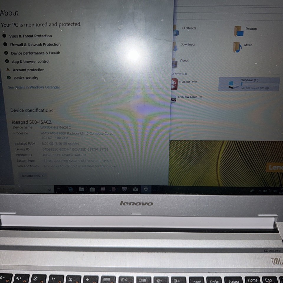 For Parts LENOVO IDEAPAD 500-15ACZ AMD A10-8700P @ 1.80GHz 8GB 1TB HDD WIN 10