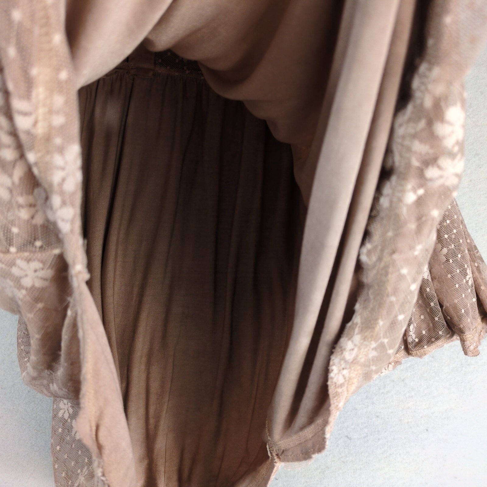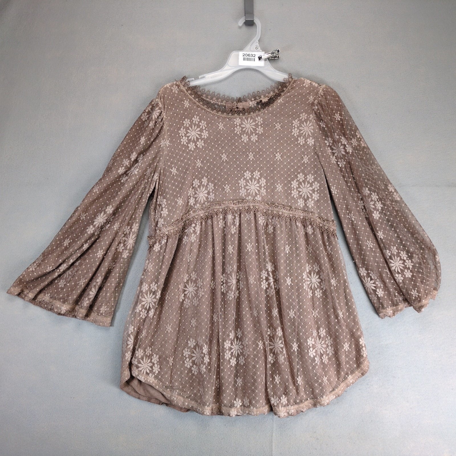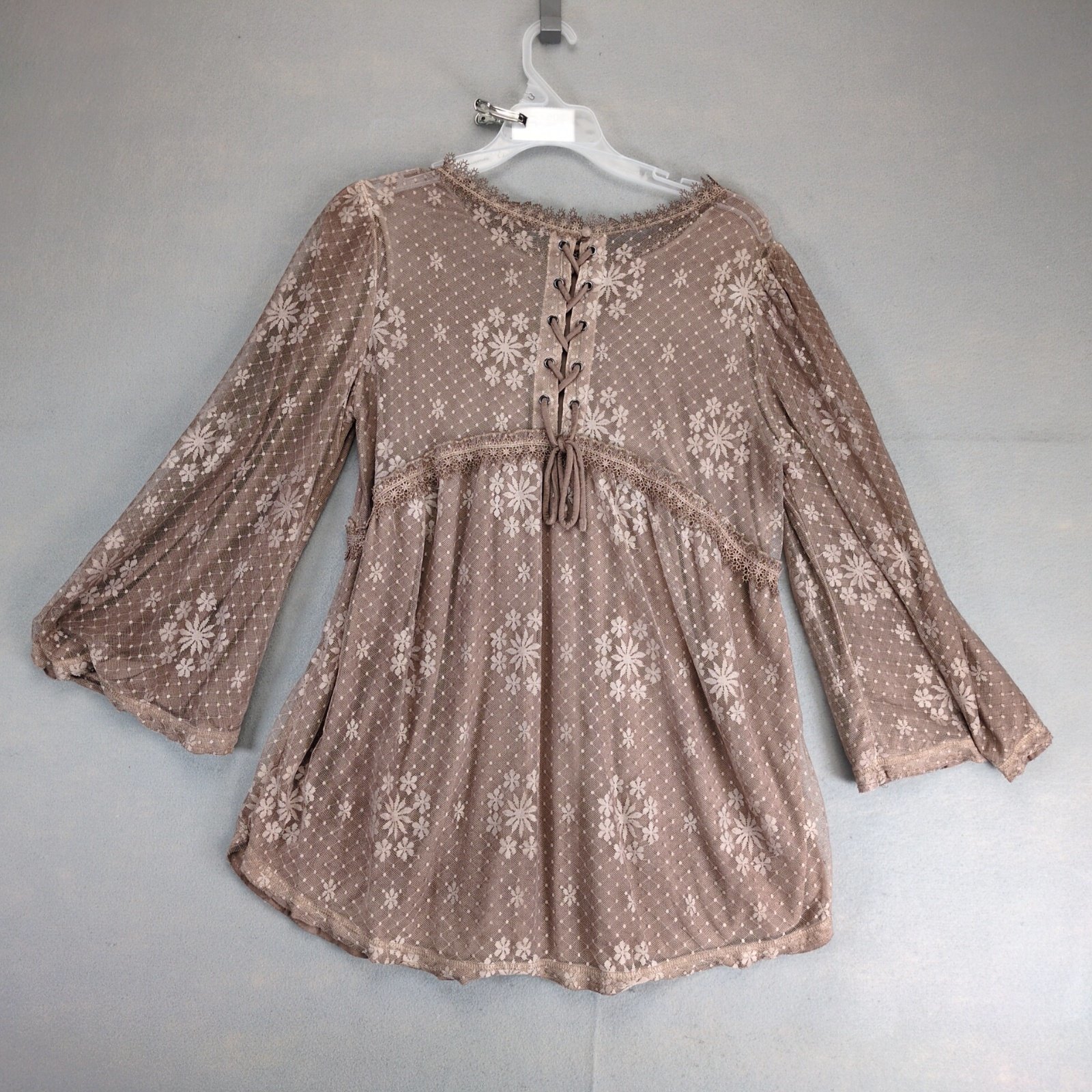 POL Brown Lace Overlay Blouse Women's L Flare Sleeves Academia Cottagecore Boho