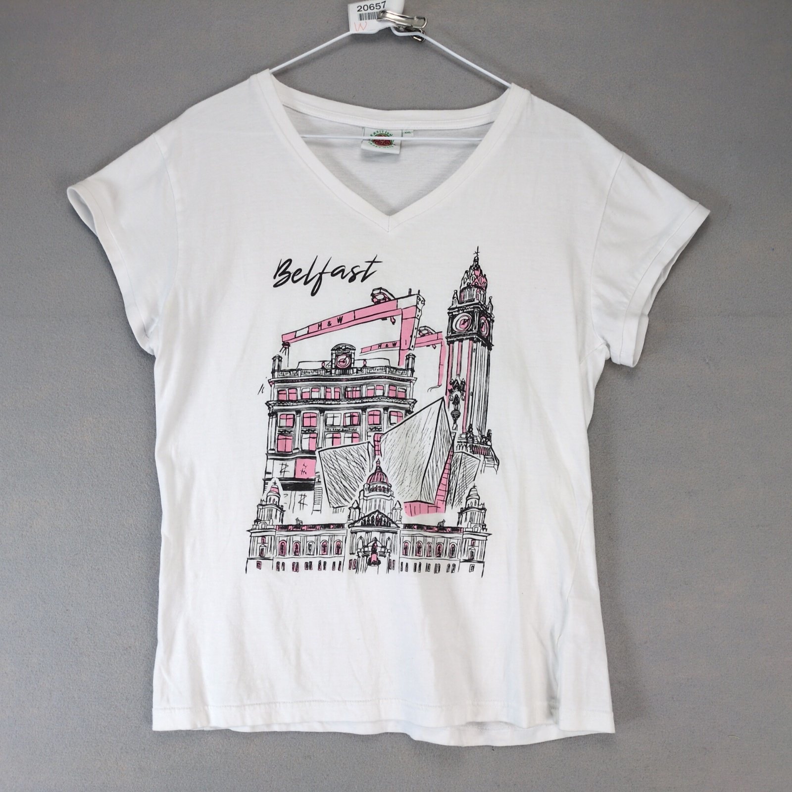 Traditional Craftwear Belfast Ireland V-Neck T-Shirt Women's XXL White Short Slv