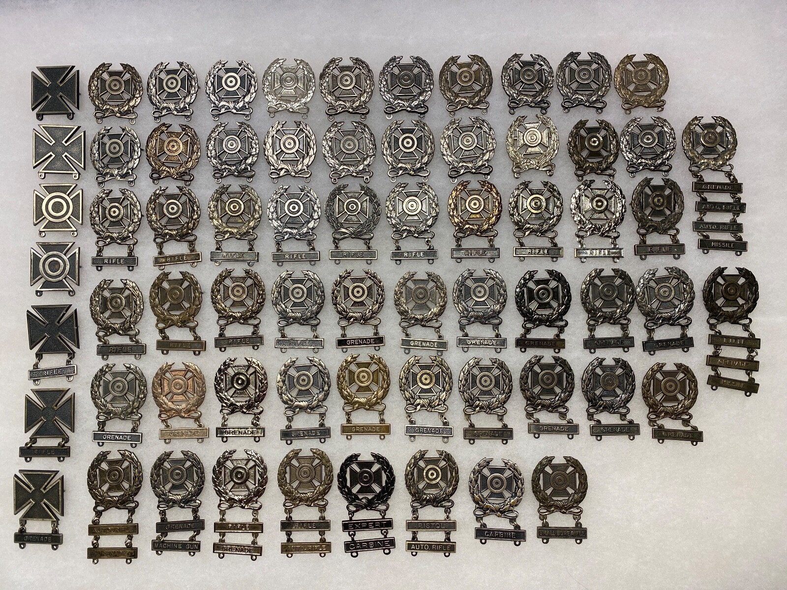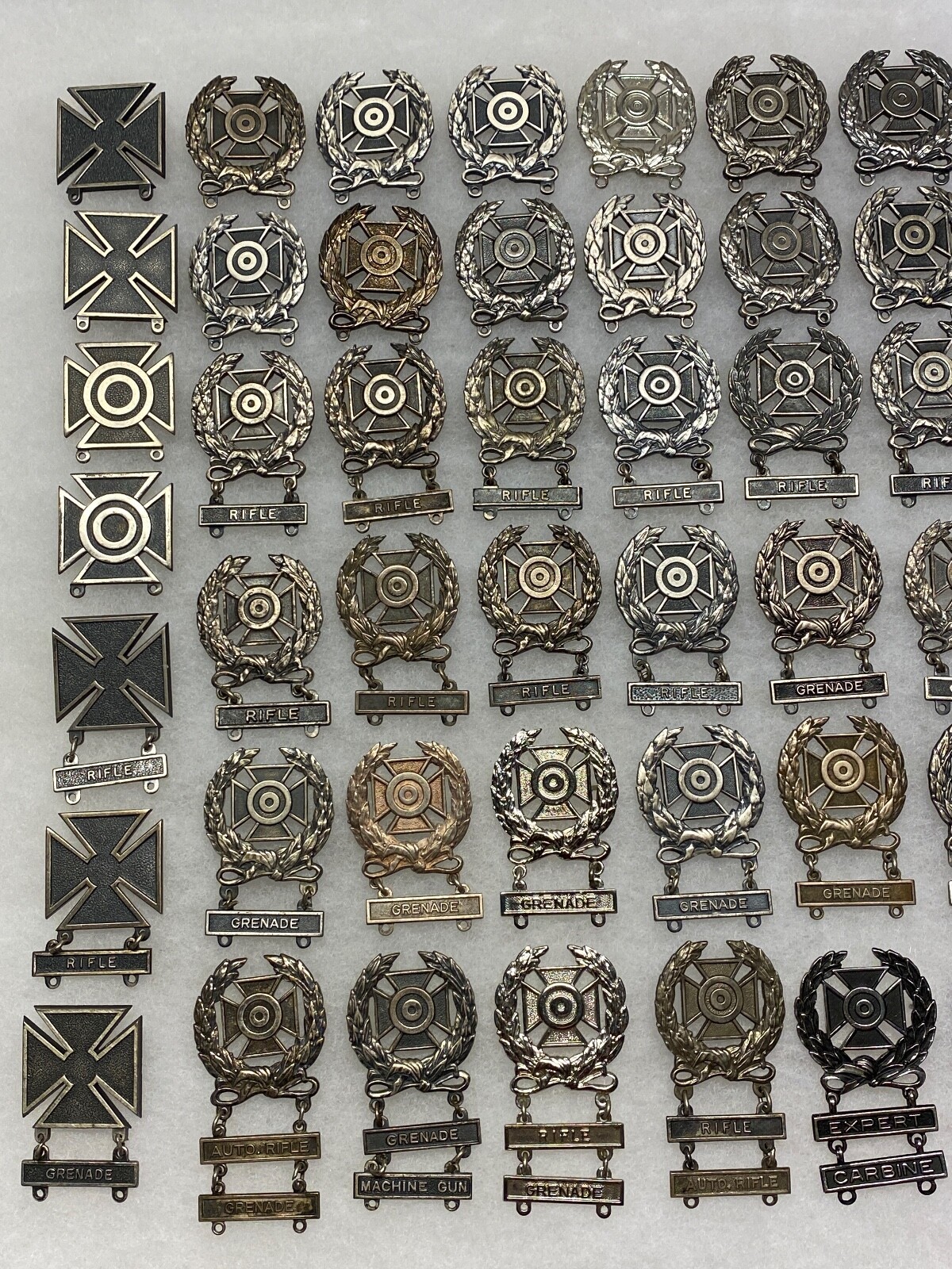 U.S. ARMY, WEAPON QUALIFICATION BADGES, GROUP OF 67, VARIOUS MAKERS, ASSORTED TIME PERIODS