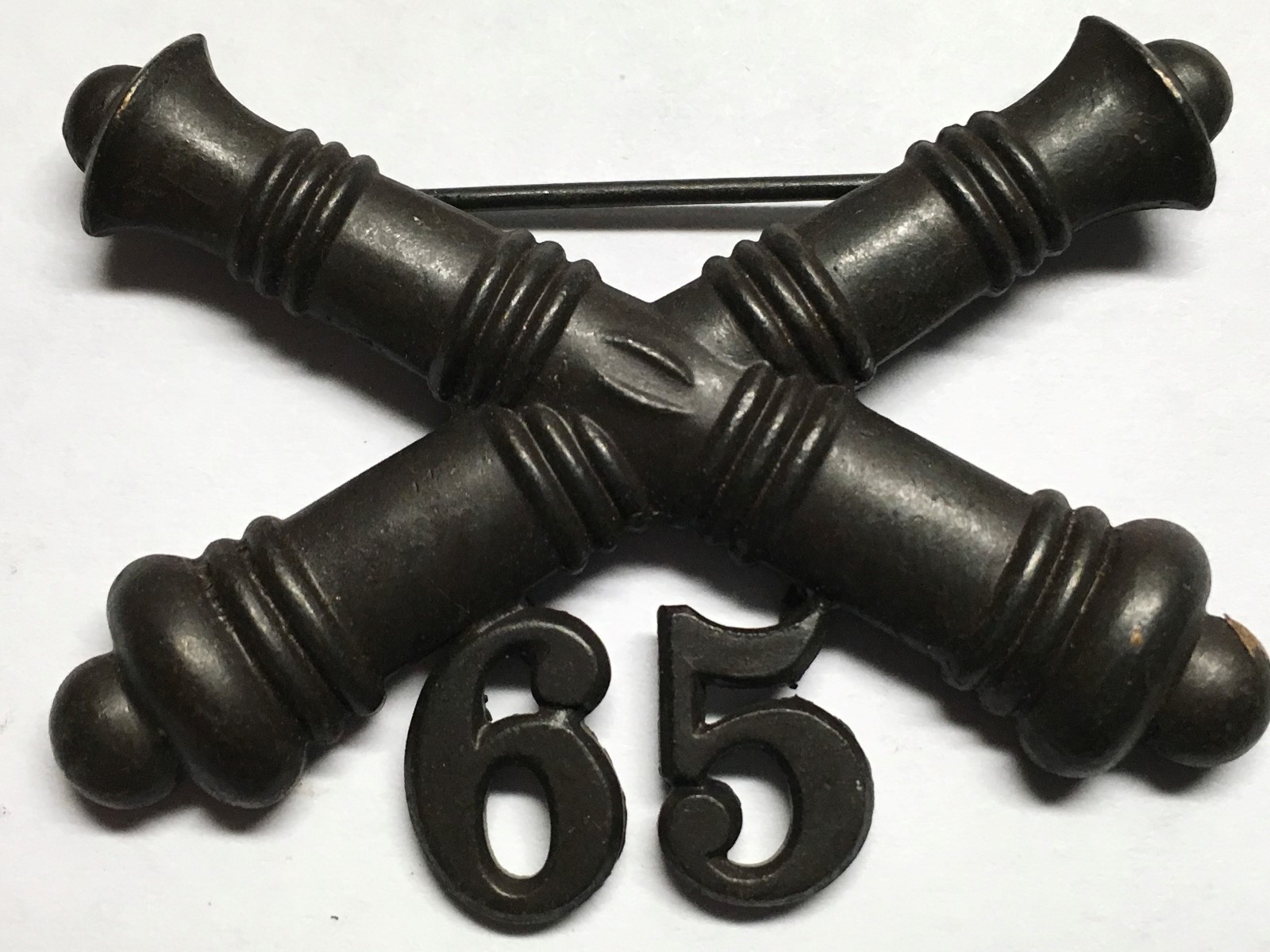 CIRCA 1902-1905, U.S. ARMY ARTILLERY CORPS, BRONZE, 65th FIELD ARTILLERY, ENLISTED, SERVICE COAT INSIGNIA