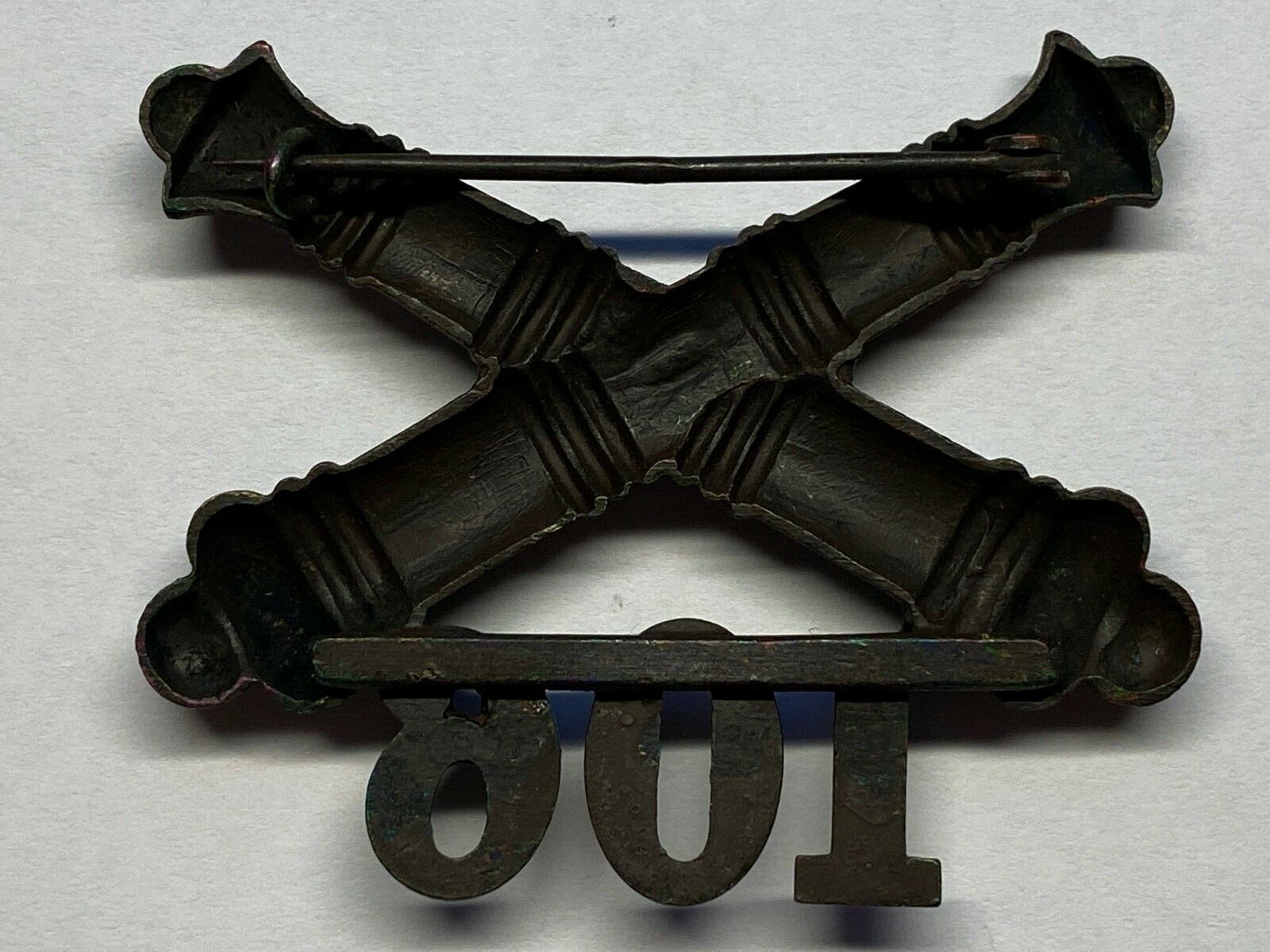 CIRCA 1902-1905, U.S. ARMY ARTILLERY CORPS, BRONZE, 106th FIELD ARTILLERY, ENLISTED, SERVICE COAT INSIGNIA