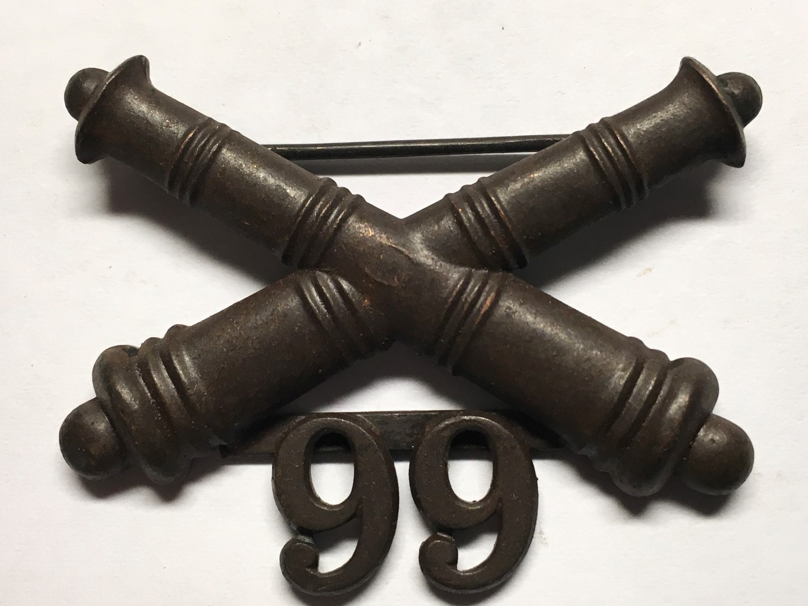 1902-1905, U.S ARMY ARTILLERY CORPS, BRONZE, 99th FIELD ARTILLERY, COLLAR DEVICE