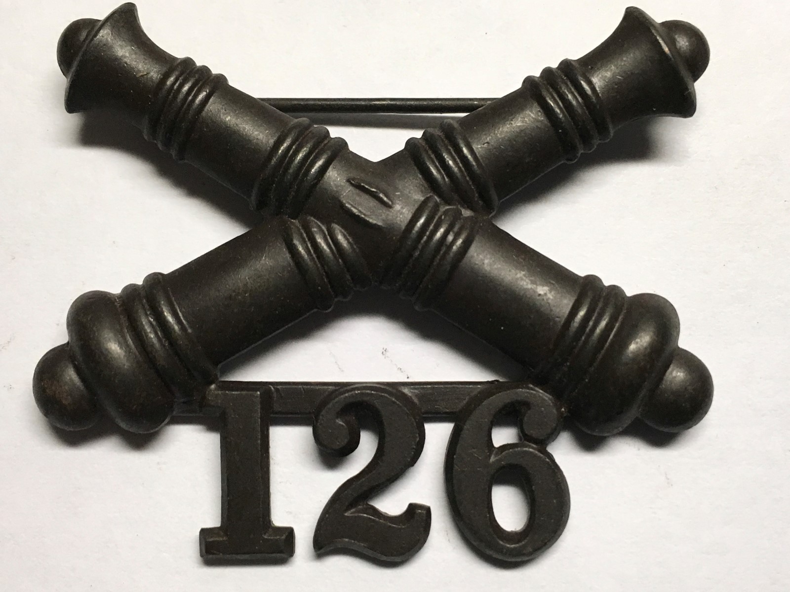 1902-1905, US ARMY ARTILLERY CORPS, BRONZE, 126th FIELD ARTILLERY, COLLAR DEVICE