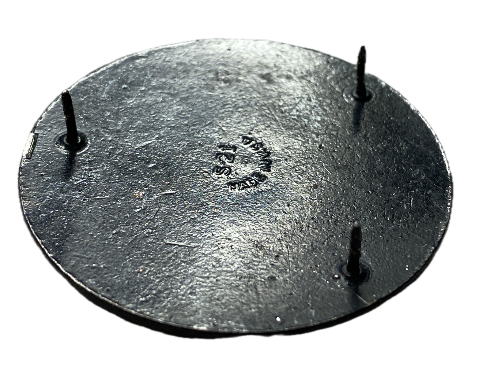 Enameled, clutch back posts, measures approximately 2" in diameter. Hallmarked "S-21 MADE IN U.S.A"