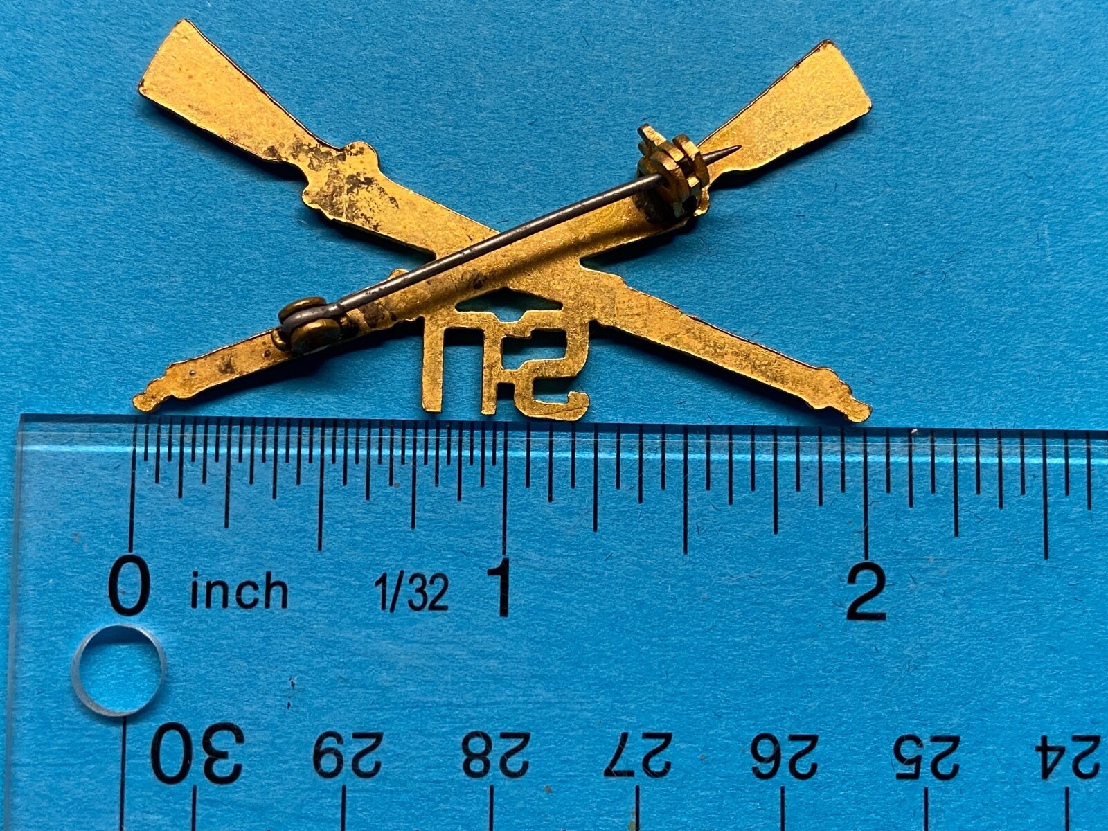 WWII, U.S. ARMY, OFFICER, INFANTRY, CROSSED RIFLES, SILVER RIFEL STOCK, PIN BACK