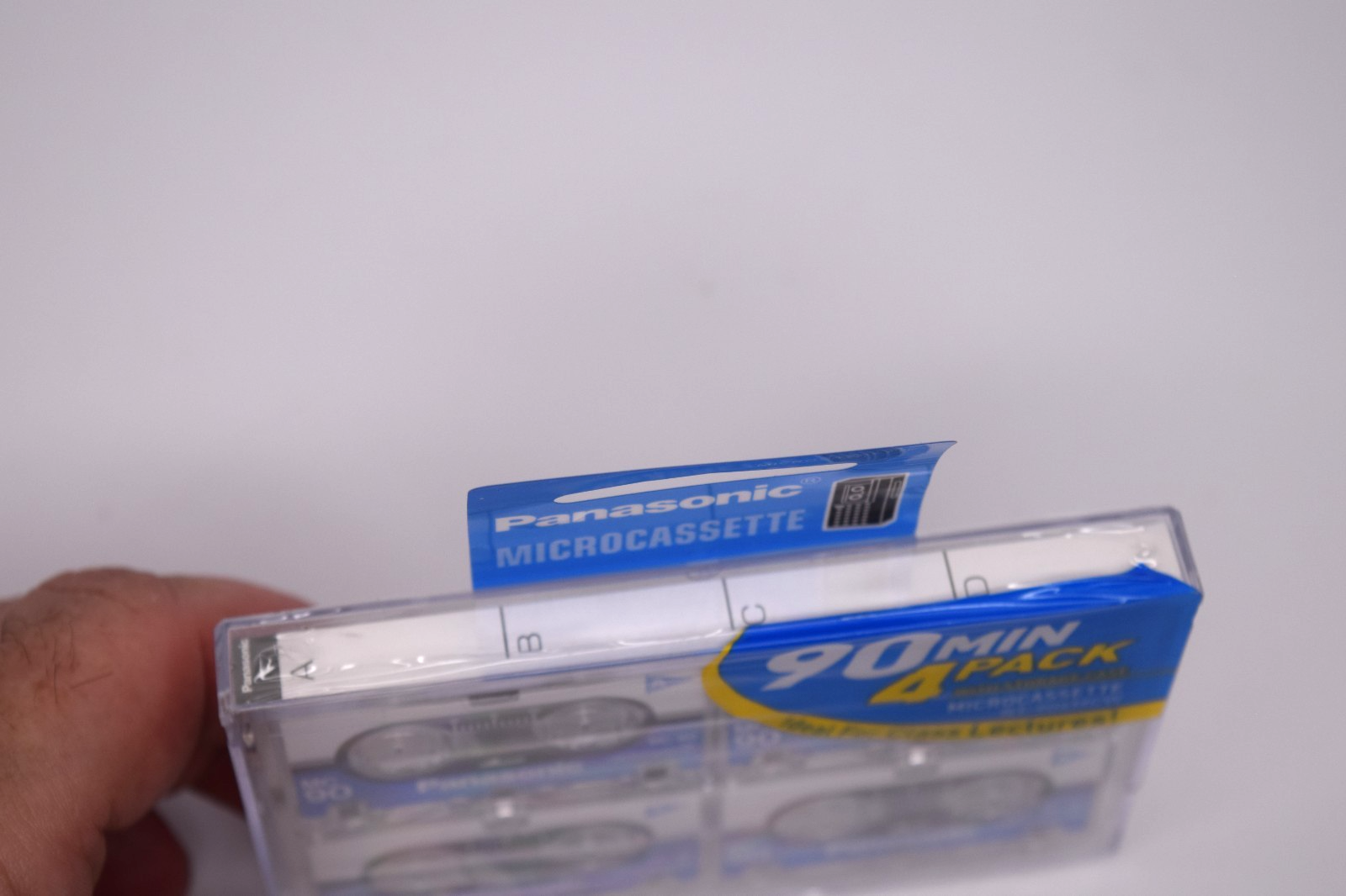 Panasonic RT-904MCW Microcassette Tapes 90 Min 4 Pack. Brand new sealed. There is a small crack in the case on the front under the seal. See all photos for details. Will ship USPS Ground Advantage.