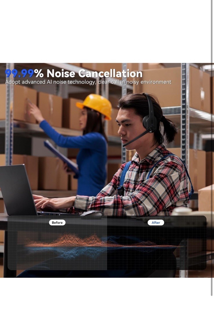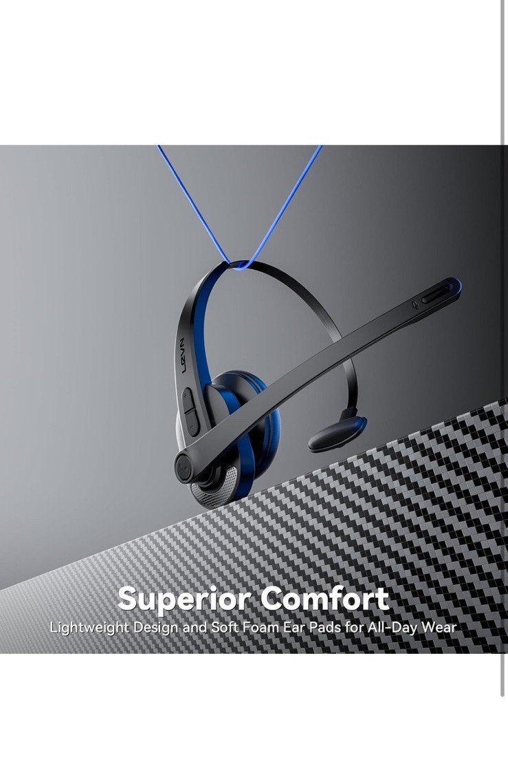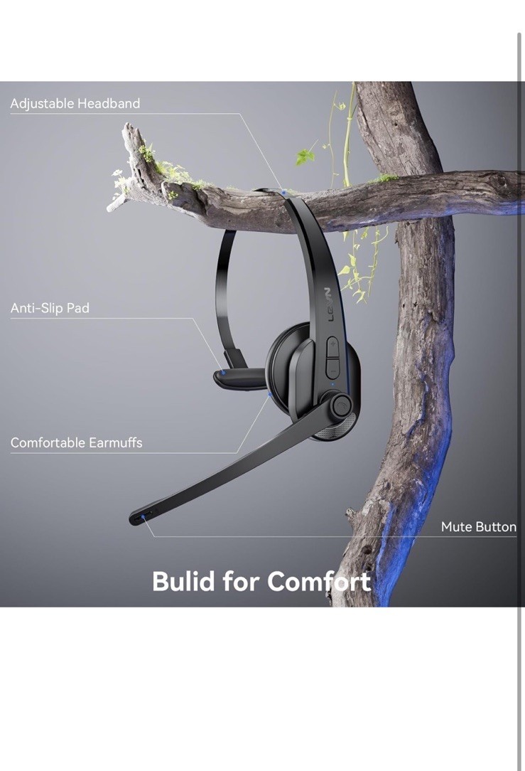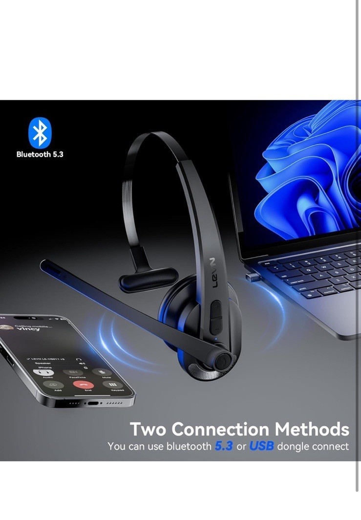 LEVN Wireless Headset with Mic for Work, Bluetooth 5.3 Headset with Microphone