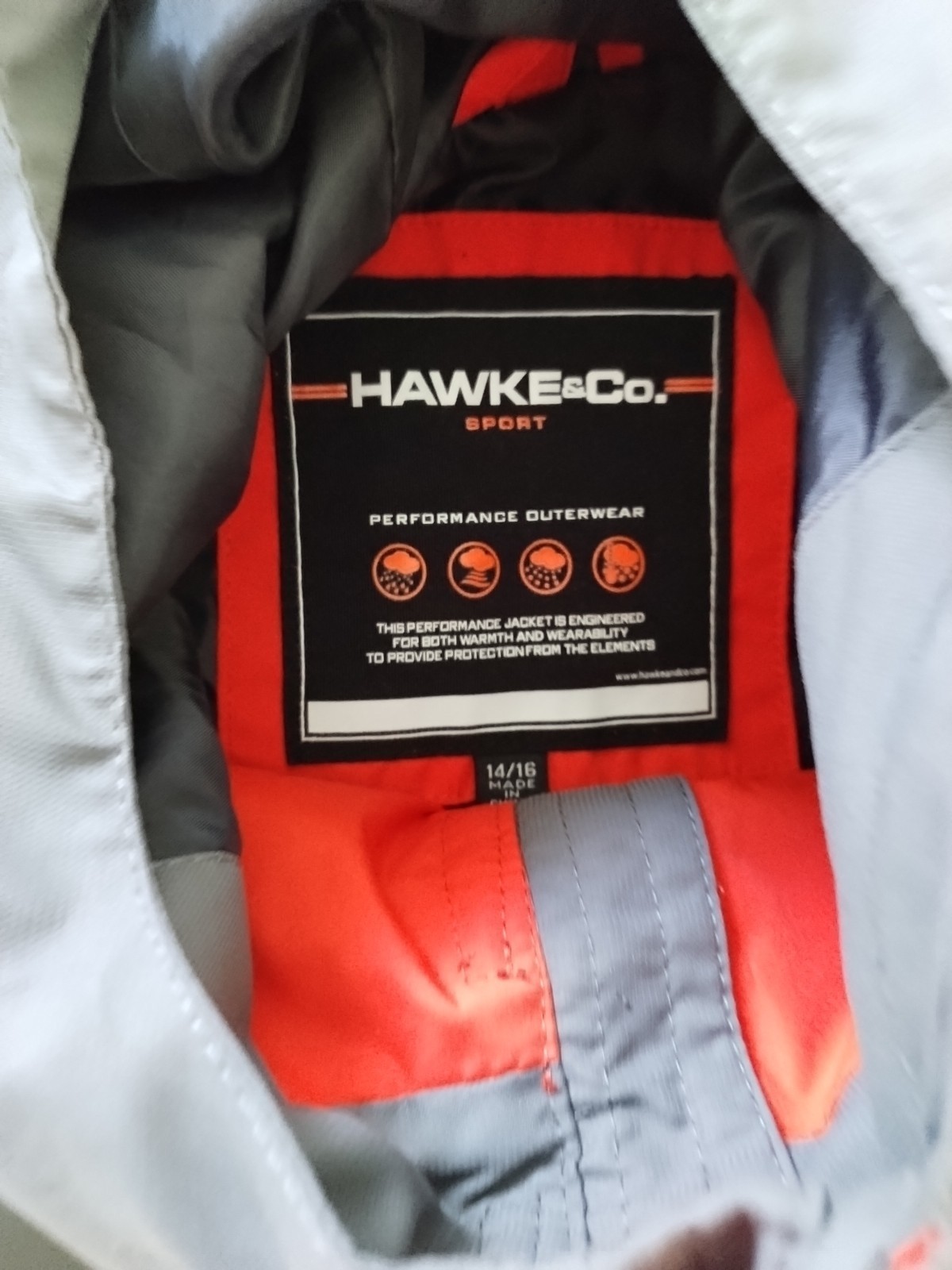 HAWKE CO Sport Performance jacket with hoodie Gray/orange size 14-16 Vintage