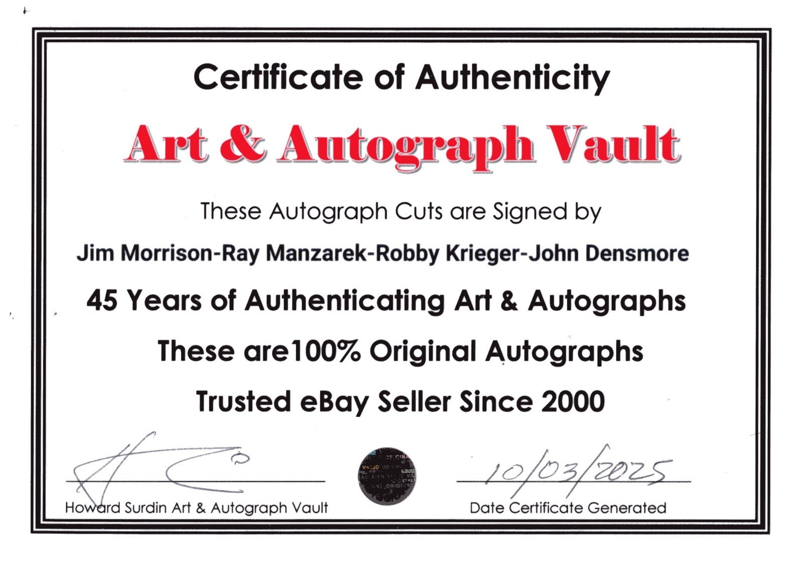 The Doors 4 Autograph Book Cuts Museum and 14 similar items