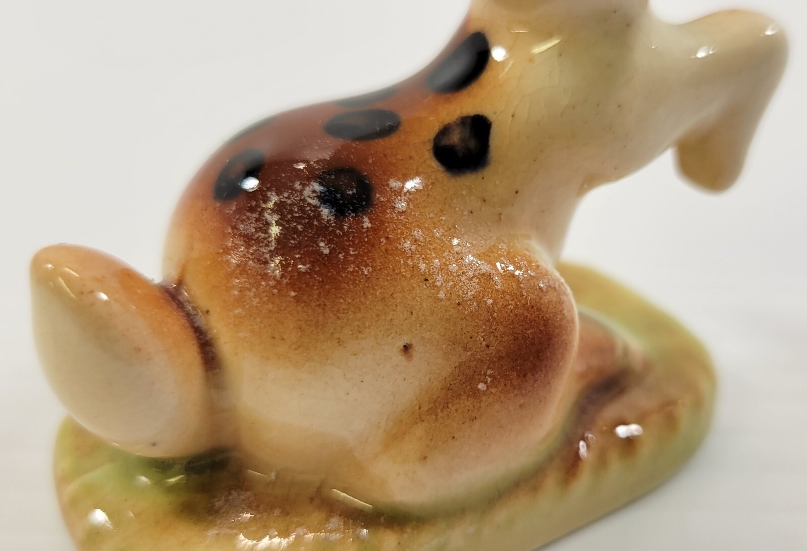Figurine is in vintage used condition with some signs of age and shelf life. There is some slight crazing with some white specks on the backside. There are no chips or cracks.