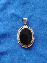 925 Sterling Silver Mexico Oval Black Stone Pendant Free Shipping