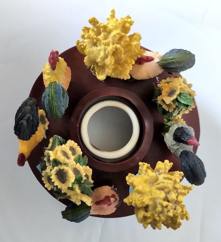 Resin topper features Sunflowers and Roosters and fits a 22 oz. Yankee Candle.