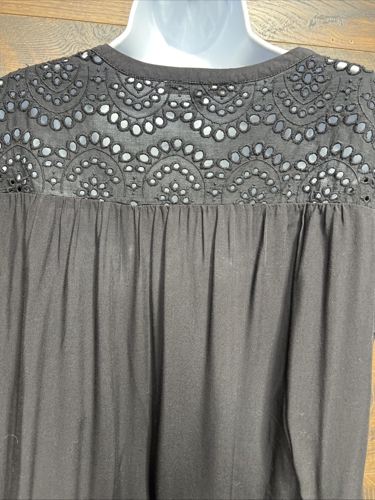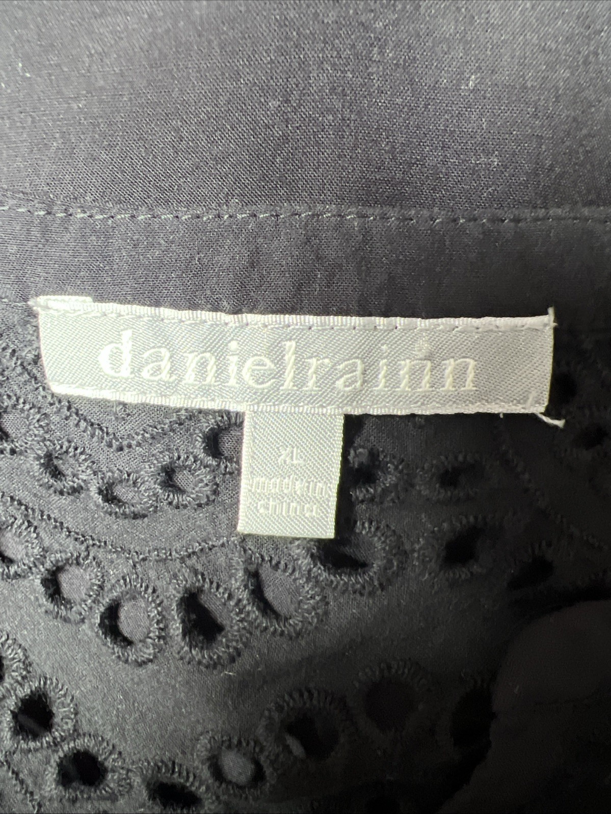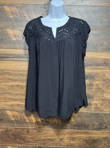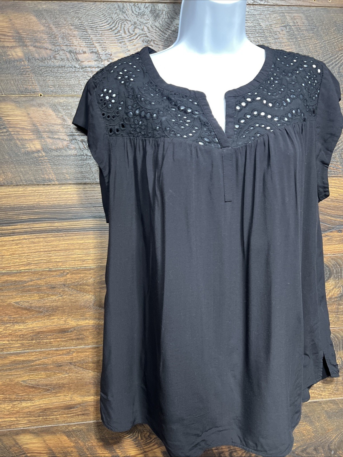 Daniel Rainn Kiara Eyelet Blouse Short Sleeves Lightweight Black XL Tunic Flowy
