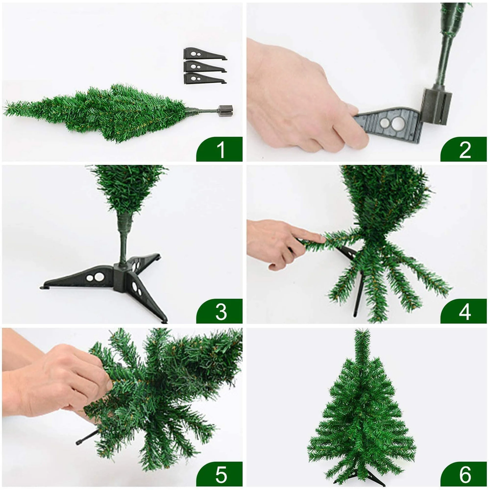24" inch green artificial christmas tree 70 Branch Tips Battery Operated 30 bulb LED 3x AAA Batteries not included Multi-Color LED lights not prelit 26 pieces ornaments included