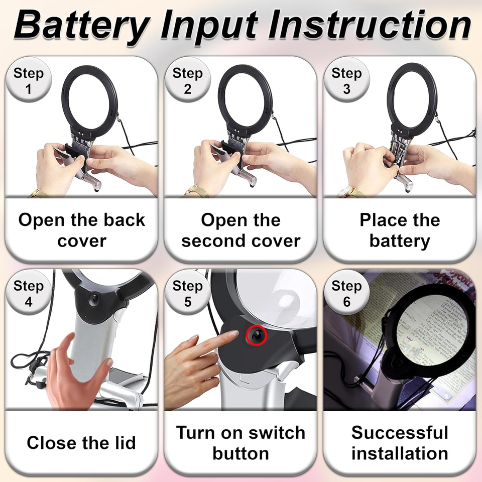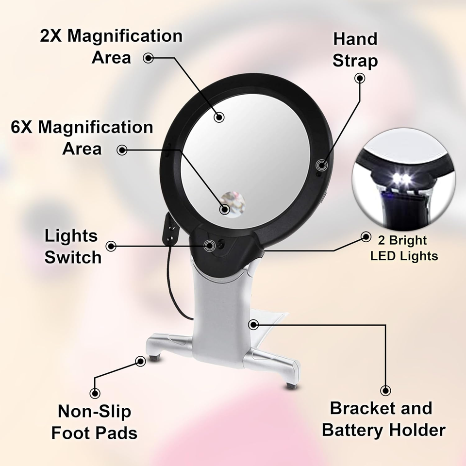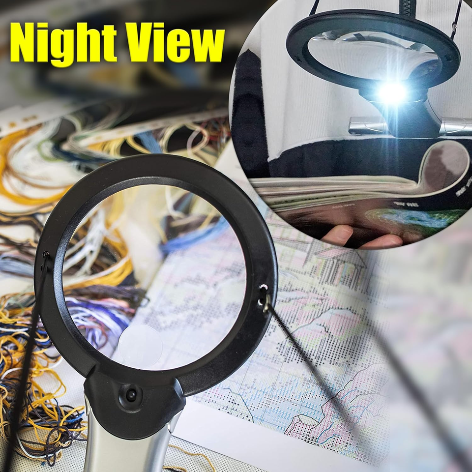 ? Crystal-Clear, Distortion-Free Vision ? See every detail with ease using this magnifier with light hands free, designed to provide sharp, distortion-free magnification for reading, crafting, and precision work. Ideal for hobbies, sewing, and even as magnifiers for seniors, it offers a large, clear lens for effortless viewing. Paired with bright LED lighting and a stable base, this versatile magnifying glass with stand ensures maximum clarity and comfort for all your close-up tasks.Say goodbye to eye strain with these versatile magnifying glass with light for effortless close-up work