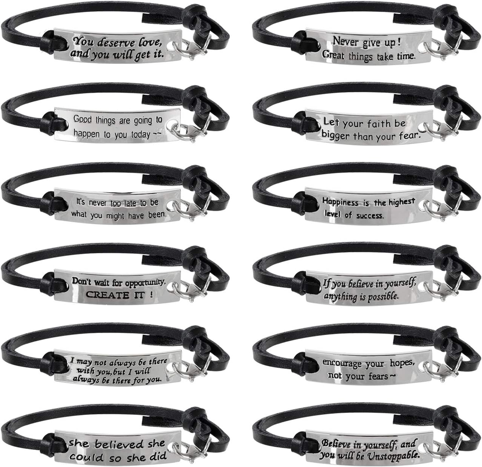 Christmas Stocking Stuffers Gifts 12 Pcs Bulk Inspirational Gifts Leather Bracelets for Women Motivational Quotes Message Encouragement Cuff