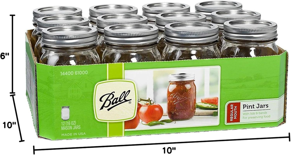 Regular Mouth 16-Ounces Mason Jar with Lids and Bands (12-Units)