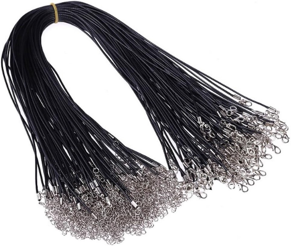 100Pcs Black Waxed Necklace Cord with Clasp Bulk for Bracelet Necklace and Jewel