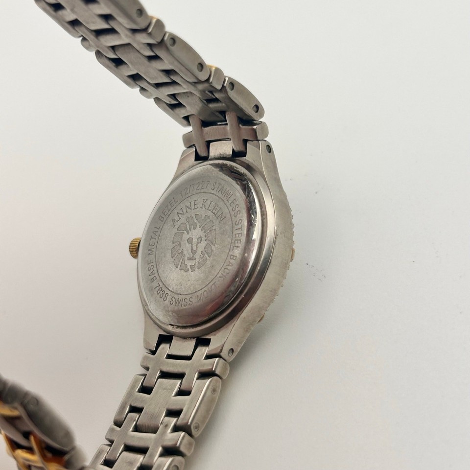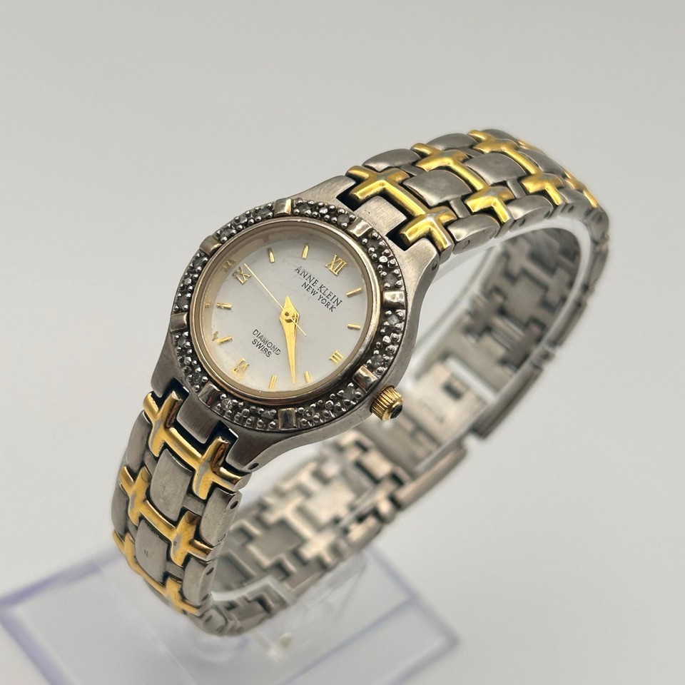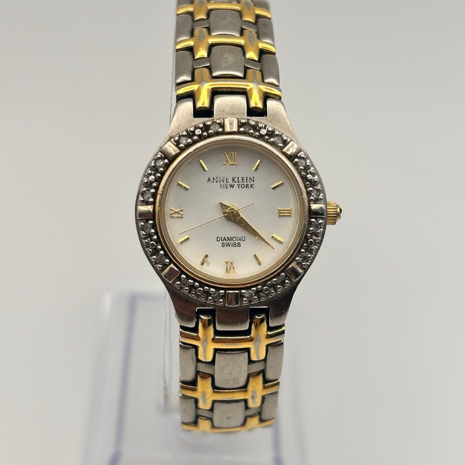 Anne Klein Diamond Silver Gold Swiss Mov’t Women’s Watch Working New Battery