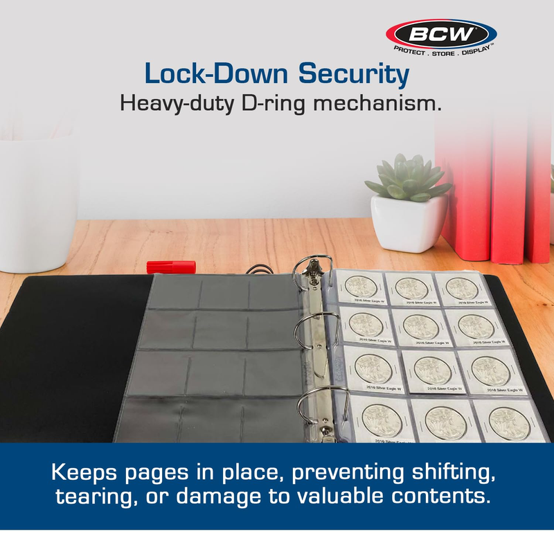 SECURE D-RING DESIGN: Features a heavy-duty D-ring that keeps pages securely in place; Ensures easy organization of your currency and valuable items