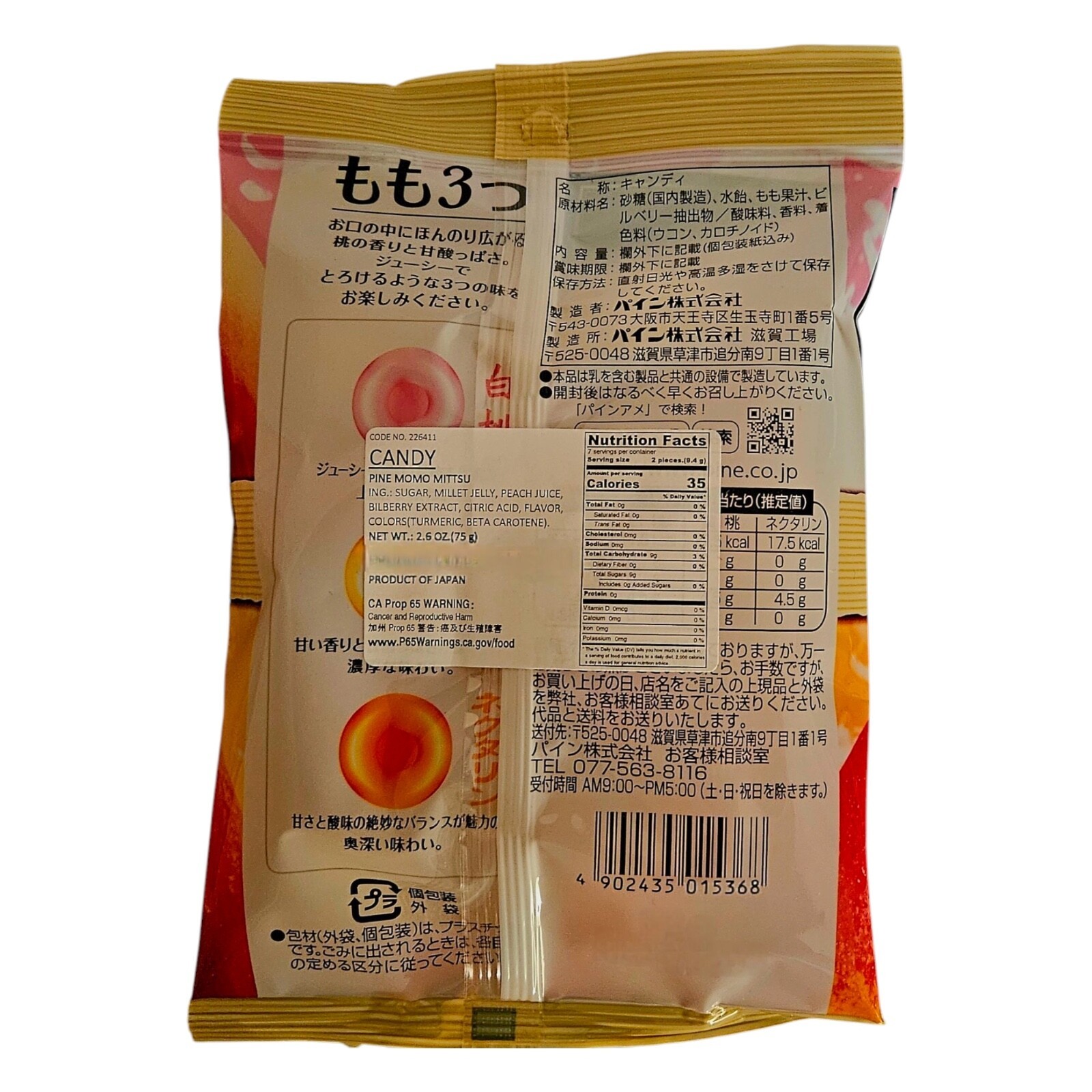 The Listing is for Japanese Premium Hard Candy - Pine 3 Peach Flavors Candy - 2.6oz, with free shipping!