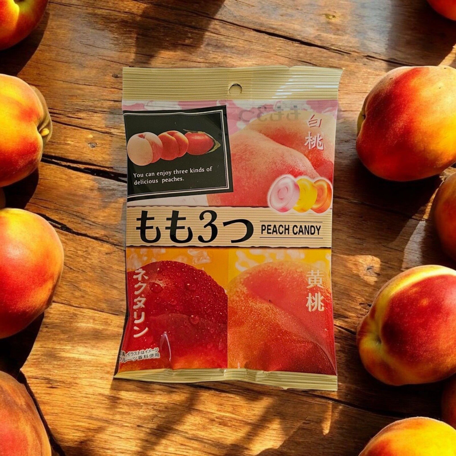 Indulge in three varieties of delicious candies featuring the flavors of white peaches, cherry peaches, and nectarines! You'll be pleasantly surprised by the distinct differences in taste among the three. Enjoy these fruity treats that make you feel like you?re actually eating fresh peaches!
