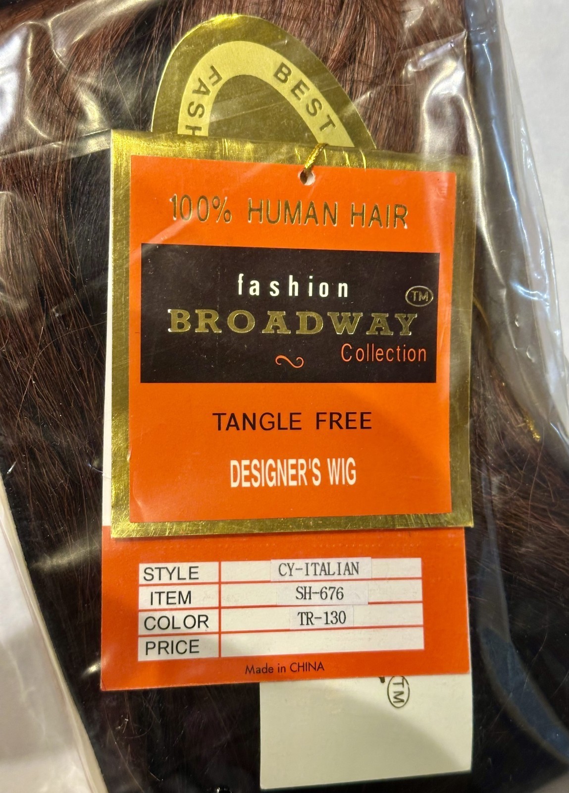 Broadway Collection CY-ITALIAN SH-676 100% Human Hair Wig TR-130 Tangle Free NIB