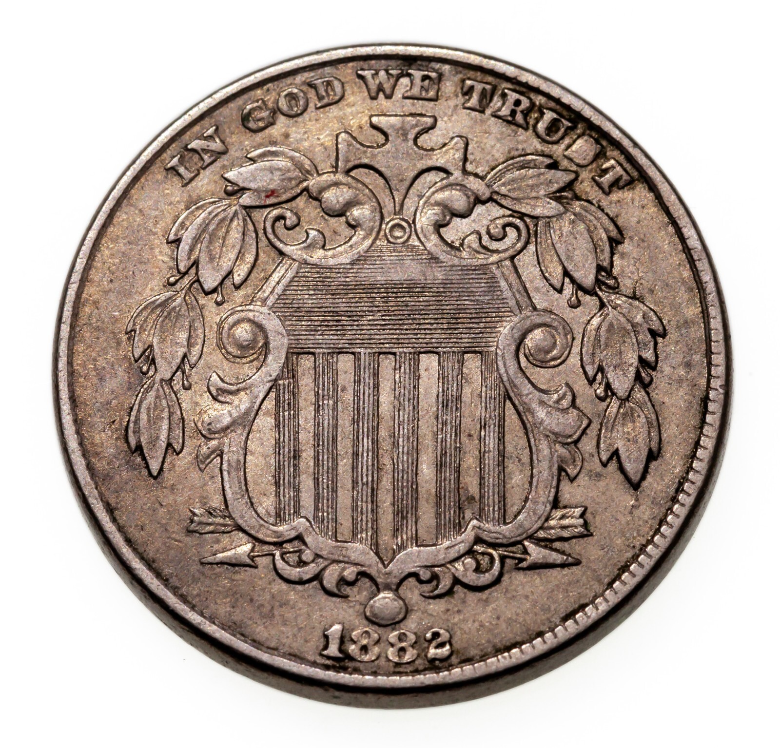 1882 5C Bouclier Nickel En Extra Fin XF État Naturel Couleur, Beau Détail